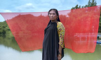 Amina, a Rohingya refugee and site management volunteer in Cox’s Bazar, helps keep children safe and supports her community to prepare for climate-related disasters.